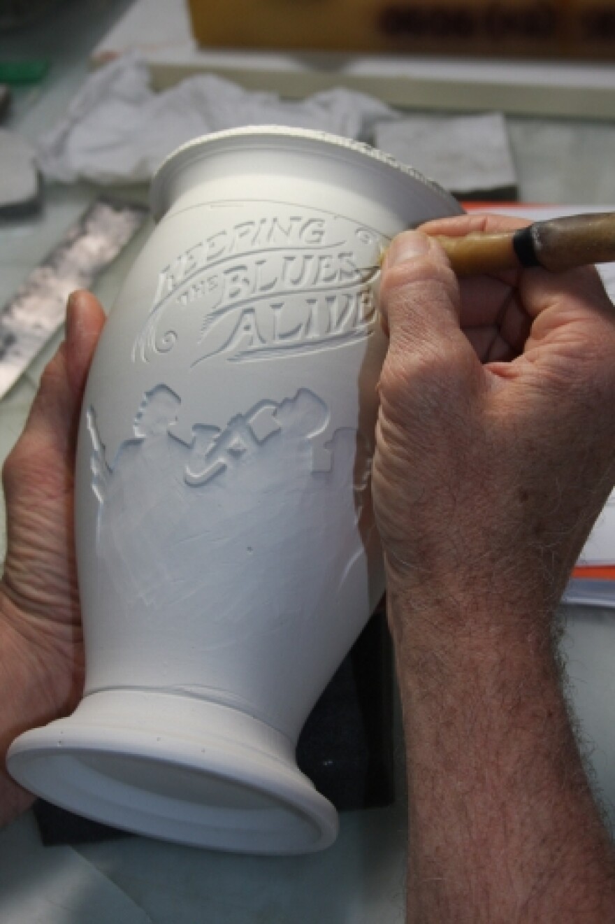 George Hibben, director of stein sales & development from the Rookood Pottery Co, is talking commemorative beer steins with Lee Hay. Again this year, the world-famous Rookwood Pottery artists have created a limited edition stein in conjunction with the Cincy Blues Society and this year's Cincy Blues Fest. The first run is for 300 steins and each one will be registered to the owner by the Cincy Blues Society.