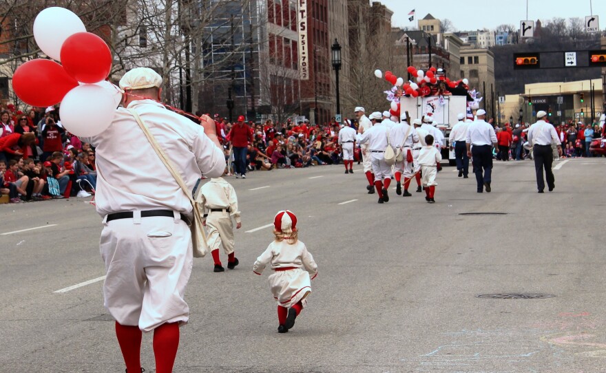 Downtown Cincinnati is a sea of red Monday for the unofficial holiday of Reds opening day. Fans gathered along the parade route for the Findlay Market Opening Day Parade. There were 12 marching bands among the 200 entries.