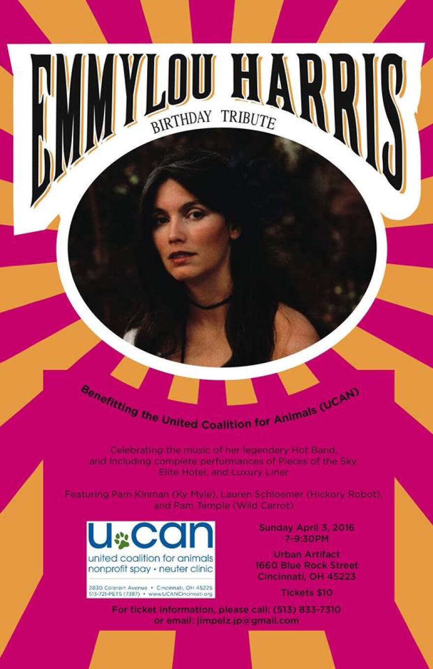 The local UCAN (United Coalition for Animals) no-kill/spay & neuter clinic will present a musical fundraiser on April 3 that celebrates the birthday of American music legend and animal lover Emmylou Harris.