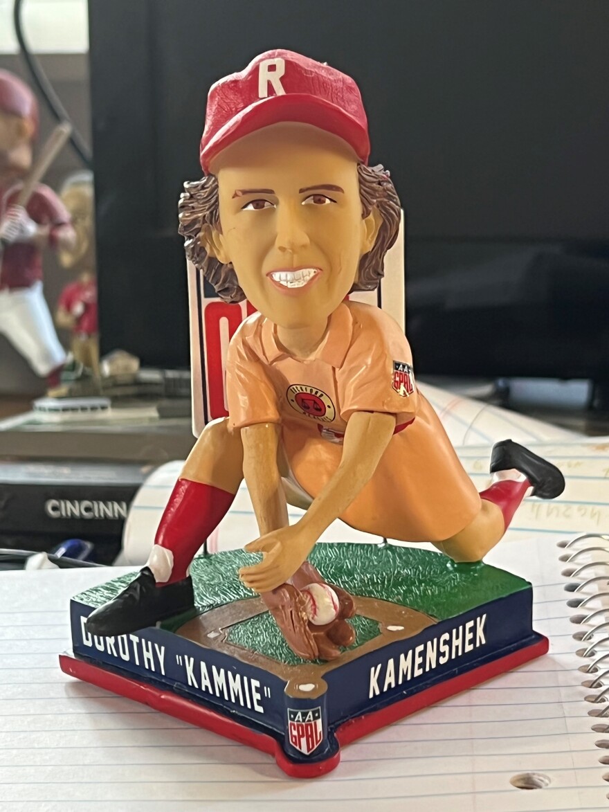 A former Cincinnatian was the most famous and arguably the best player in women's professional baseball. Dorothy "Kammie" Kamenshek was born in Norwood, graduated from Roger Bacon High School and was signed by a scout while playing sandlot baseball. She is in pictures in the Reds Hall of Fame exhibit. Kamenshek went on to play for the Rockford Peaches and was eventually depicted in the movie A League of Their Own.
